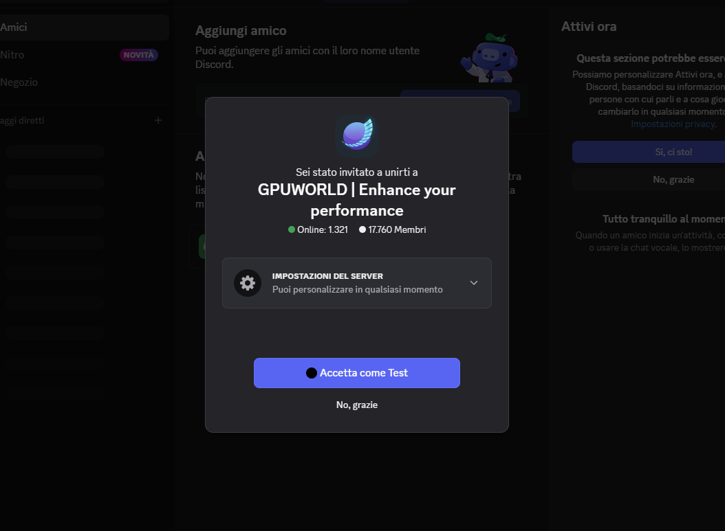 Segui attentamente le istruzioni qui sotto per configurare correttamente Discord e accedere al server ufficiale GPUWORLD.