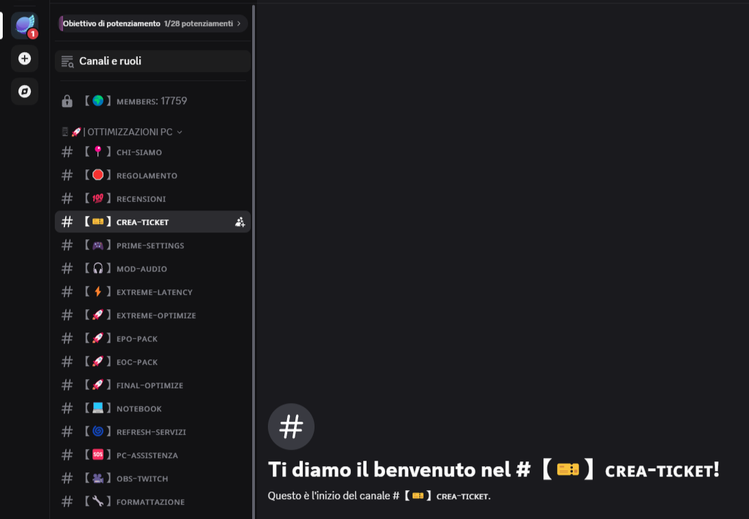 Per richiedere il servizio che ti interessa, dovrai navigare nel menu laterale a sinistra e cercare la voce corrispondente al servizio desiderato. Oppure, cliccando sul nostro sito sui vari pulsanti "Discord" sotto a ciascun servizio, ti porterà direttamente nel canale giusto.
