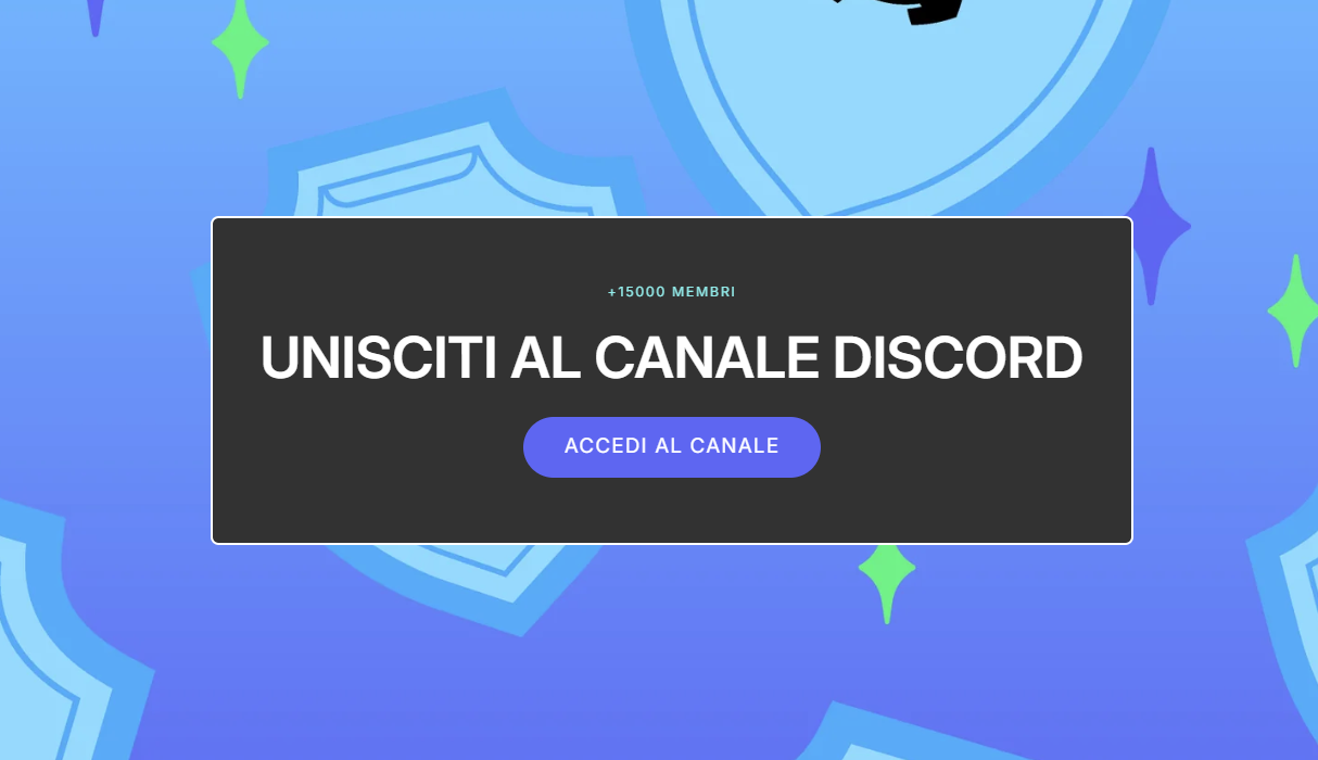 Premi il tasto qui sotto per unirti al nostro canale Discord per avere accesso ai nostri contenuti e poter richiedere i nostri servizi.